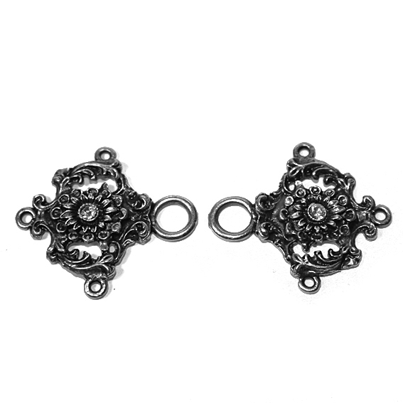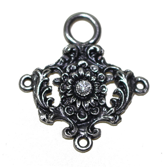 Passend zu unserem Herzanhänger mit Straß führen wir auch dieses Zwischenstück bzw. Verbinder. Aber auch als Miederhaken kann man diesen Anhänger verwenden. Dazu den Anhänger einfach auf die Seite drehen und an das Mieder nähen.