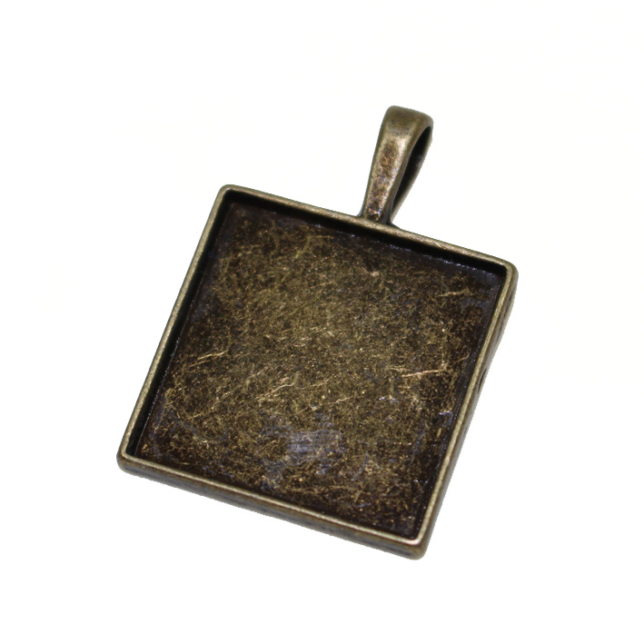 Quadratischer Anhänger für Cabochons in bronze, für Glassteine in 25x25mm, 1 Stück ohne Cabochon