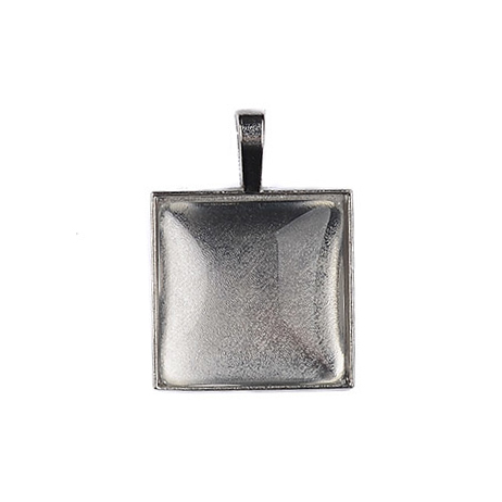 Quadratischer Anhänger für Cabochons in silber, für Glassteine in 25x25mm, 1 Stück ohne Cabochon