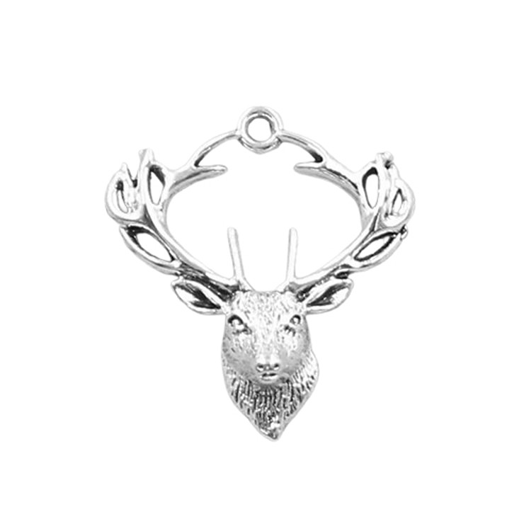 Metallanhänger Hirschkopf silber mit 2 Ösen, ca. 28x25mm, 1 Stück