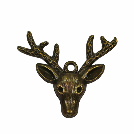 Metallanhänger Hirschkopf bronze, ca. 37 x 32mm, 1 Stück