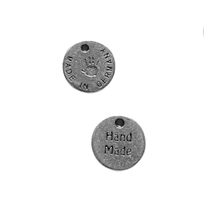 Metallanhänger rund Hand made, ca. 12x10mm, silber, 1 Stück