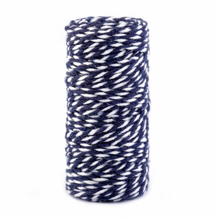 Dekokordel / Bäckergarn / Wurstgarn / Baker's Twine in weiss/dunkelblau, 100% Baumwolle, ca. 1,5mm, Preis pro Meter (Schnittware)