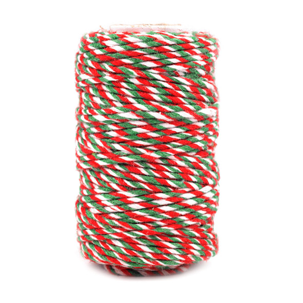 Dekokordel / Bäckergarn / Wurstgarn / Baker's Twine in weiss/grün/rot, 100% Baumwolle, ca. 1,5mm, Preis pro Meter (Schnittware)