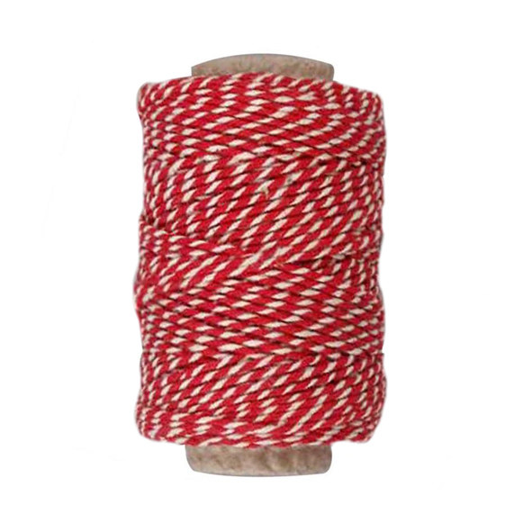 Dekokordel / Bäckergarn / Wurstgarn / Baker's Twine in weiss/rot, 100% Baumwolle, ca. 1,5mm, Preis pro Meter (Schnittware)