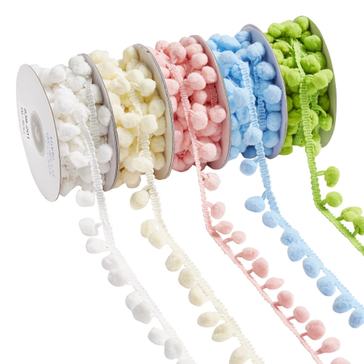 Bommelband / Pompomband, die einzelnen Pompoms sind ca. 20mm im Durchmesser, 100% Polyester, Preis pro Meter