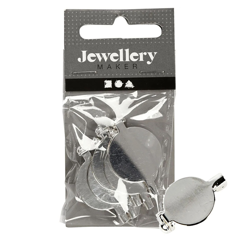 Die Broschennadeln haben eine flache Platte zum Ankleben von Accessoires, Filz, Stoff, Perlen oder anderen hübschen Kleinigkeiten. Wie wärs mit selbstgebastelten Anstecknadeln zum Dirndl? Es lassen sich flux hübsche Edelweißblüten und andere Accessoires darauf anbringen.