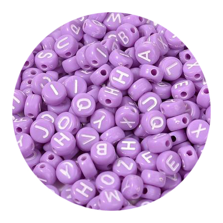 Zum Fertigen von farbenfrohen Namensarmbänder. Die Acrylperlen mit weißen Buchstaben sind der ideale Hingucker für Schnullerketten, Armbändchen, Schlüsselanhänger oder Namensketten. Die Perlen sind ca. 7mm im Durchmesser und 4mm stark. Die Bohrung ist für Fädelmaterial bis zu 1mm geeignet.