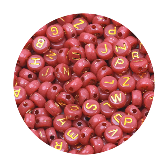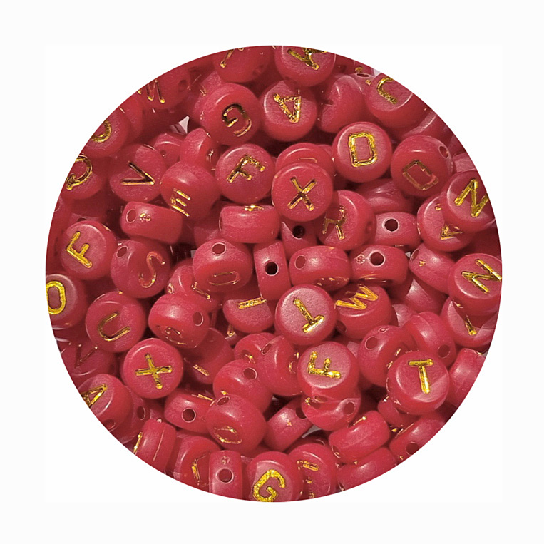 Buchstabenperlen rot mit goldener Schrift, ca. 4 x 7mm, Preis pro ca. 100 Stück (15g)