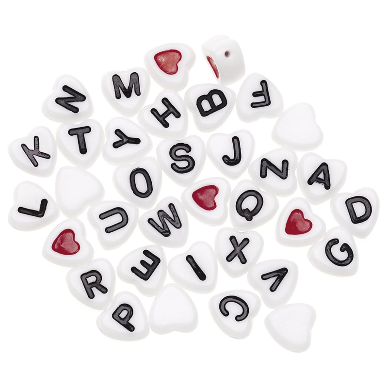 Zum Fertigen von Namensarmbänder. Die Acrylperlen mit weißen Buchstaben sind der ideale Hingucker für Schnullerketten, Armbändchen, Schlüsselanhänger oder Namensketten. Die Perlen sind ca. 7mm im Durchmesser und 3-4mm stark. Die Bohrung ist für Fädelmaterial bis zu 1mm geeignet.