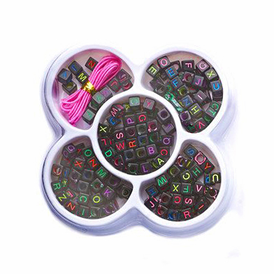 Buchstabenperlen in Würfelform, schwarzer-bunt, ca. 7 x 7mm, quadratisch, ca. 100 Stück
