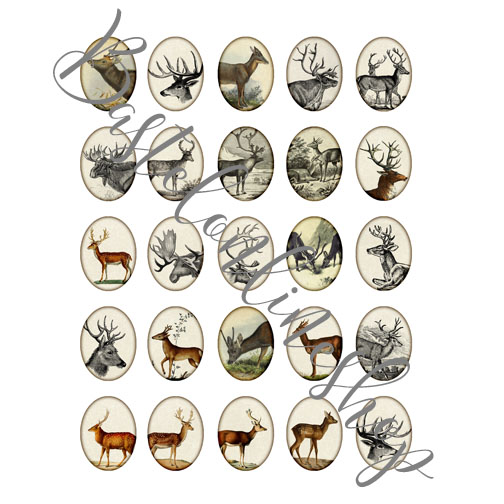Cabochon mit gewünschtem Hirschmotiv, ca. 30x40mm, oval für Ringschienen/Fassungen von 30x40mm geeignet