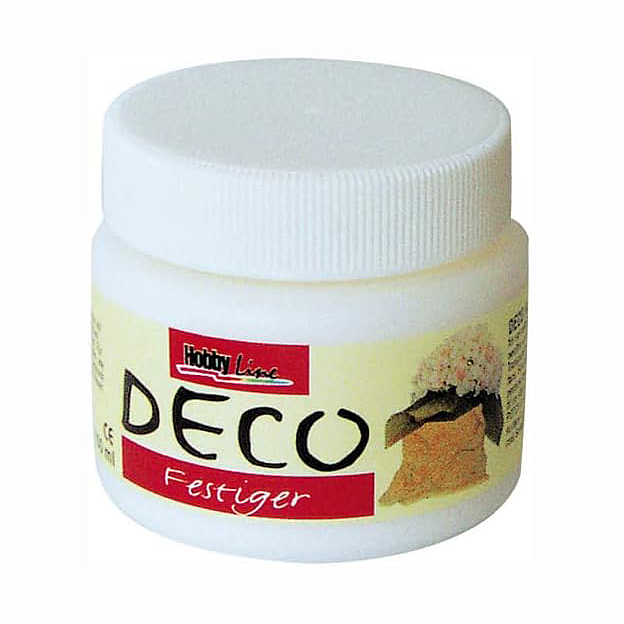 Hobby Line Deco-Festiger ist ein formgebender, lufttrocknender Festiger auf Wasserbasis. Der Festiger ist geeignet zum Härten von Textilien, Seide, Leder und Naturpapieren. Mit Hobby Line DECO-Festiger werden z.B. Baumwolltaschen zu Blumenübertöpfen, Seidentücher zu Obstschalen oder Stoffe zu Dekorationselementen - auch größere Teile, wie z.B. ein Raumteiler, können erstellt werden.