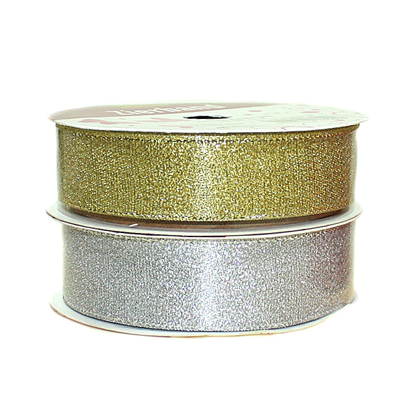 Glitzerband in gold oder silber, ca. 25mm breit, 100% Polyester, 3m