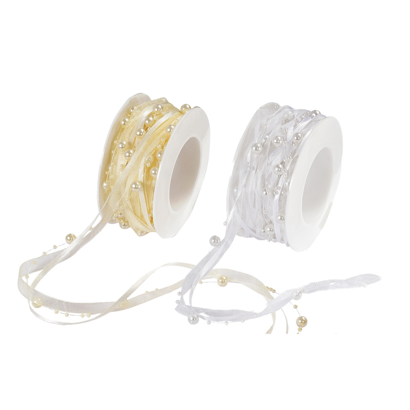Dekoband mit Perlen in weiß oder creme, ca. 6-8mm breit, 10m Rolle