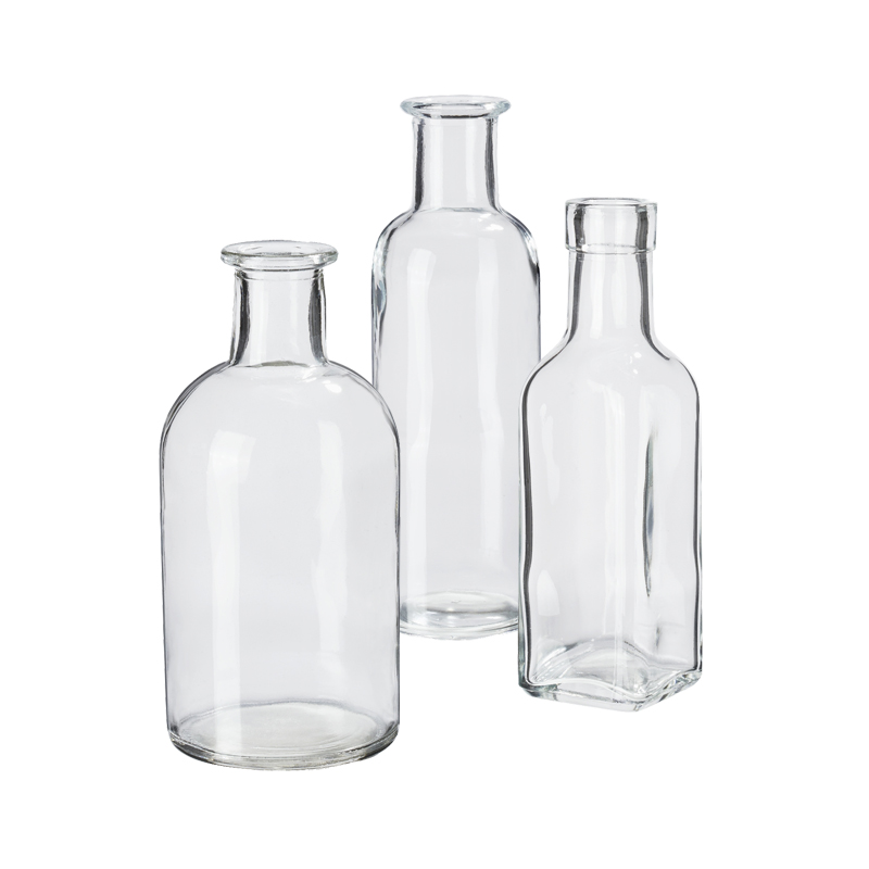 Dekoflaschen, diverse Größen, Glas klar, 10 Stück ohne Korken