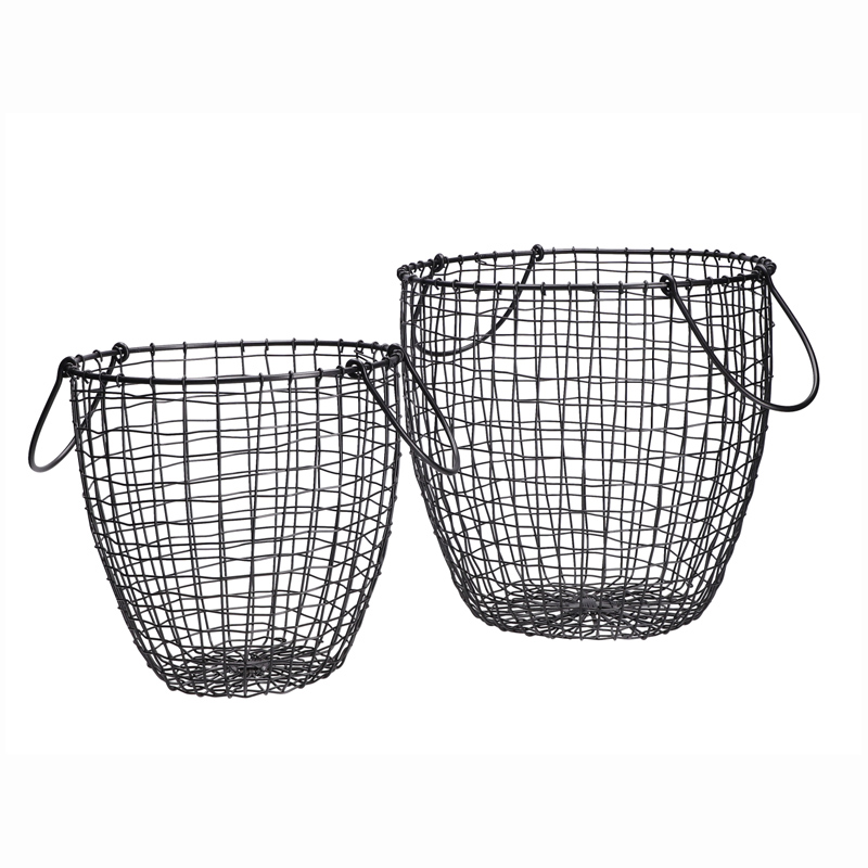 Drahtkörbe gehen immer. Egal ob bepflanzt, als Deko oder für die Ernte. Die praktischen Henkelgriffe erleichtern das Tragen und die schwarze Patina erinnert an Antikware. Sie erhalten ein 2er Set. Sie werden lange Freude damit haben.