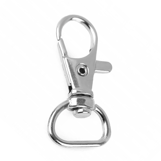 Karabinerhaken für Taschenriemen oder Schlüsselanhänger sind ideal zum schnellen Befestigen. Den Hebel nach unten drücken, einhängen und loslassen und schon hält der Taschenriemen fest an der Tasche. Als Gegenstück gibt es Halbringe, die an der Tasche befestigt werden. Für Schlüsselanhänger führen wir die Schlüsselringe in alle Größen.