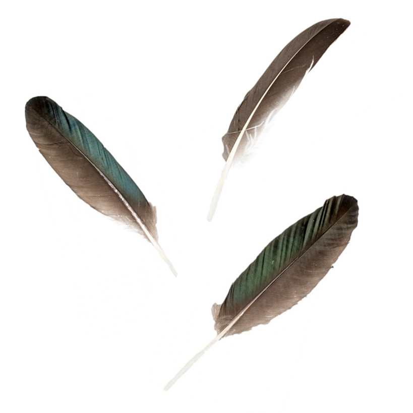 Entenfedern schillern in grün und blau und sind sehr fest und starr. Die Entenfedern stammen von den Männchen, also vom Erpel, da nur die Männchen diese schillernden Federn besitzen.