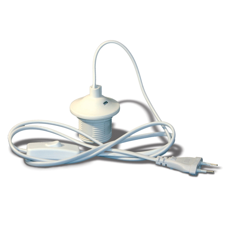Das Set besteht aus einer Fassung für E27 Glühbirnen, dem Kabel und des Steckers. Die Kabellänge beträgt 1m und die Farbe ist weiß.