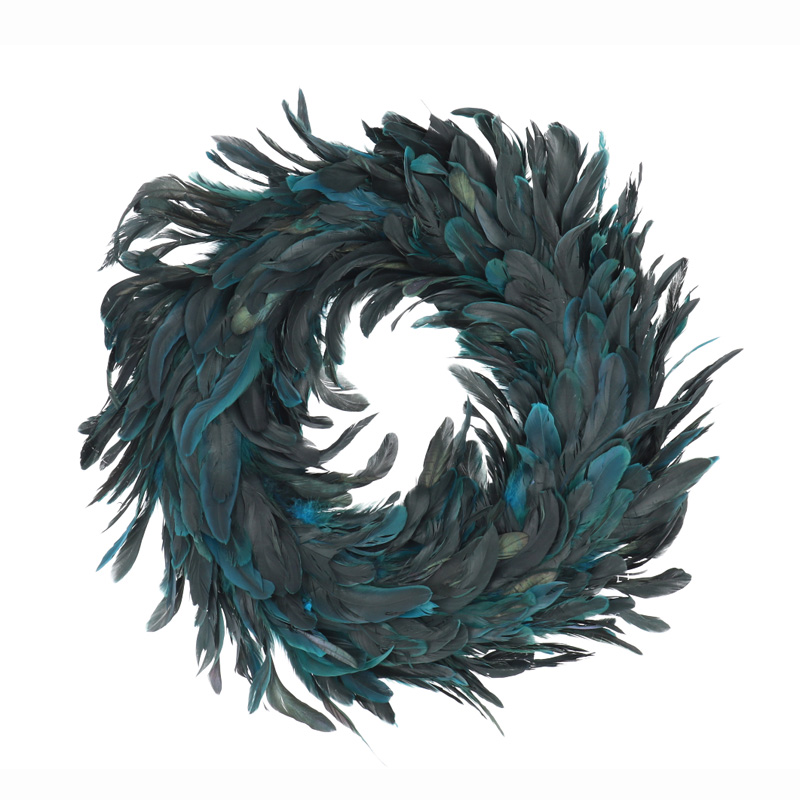 Kranz aus Federn petrol, ca. 37cm innen ca. 50cm außen, 1 Stück