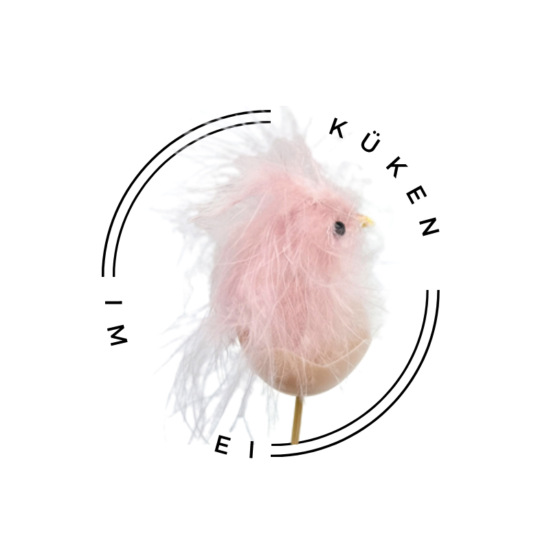 Frisch geschlüpft! Das Küken hat sich soeben aus dem Ei befreit und läutet Ostern ein. Die Federn sind echte Flauschfedern und der Stab mit Küken ist ca. 5x7x25cm.