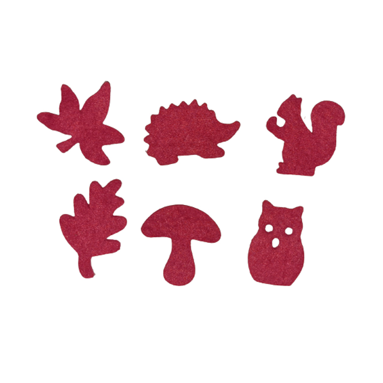 Filzblätter/Igel/Eule/Pilz & Eichhörnchen bordeaux, ca. 4-4,5cm, 3mm stark, 100% Polyesterfilz, 6er Set