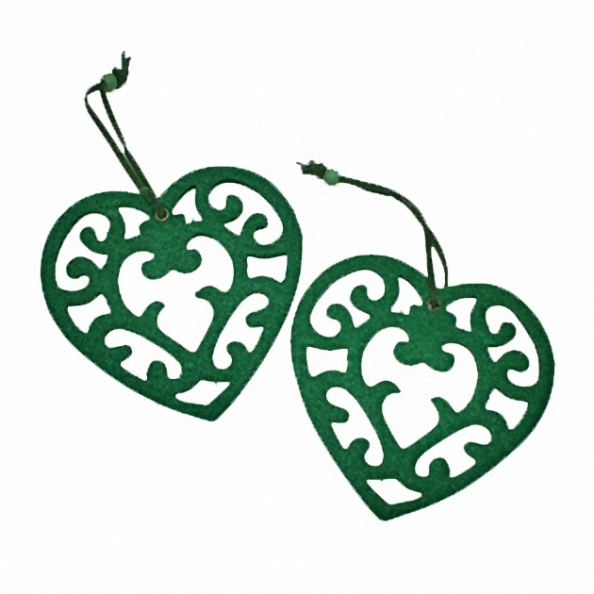 Wunderschöne Applikation aus Filz in Form eines Herzens. Die Farbe ist tannengrün und das Material 100% Polyesterfilz. Das Stanzteil hat eine Größe von 10 cm. Die Schnörkel erinnern etwas an Hirschgeweihe.....