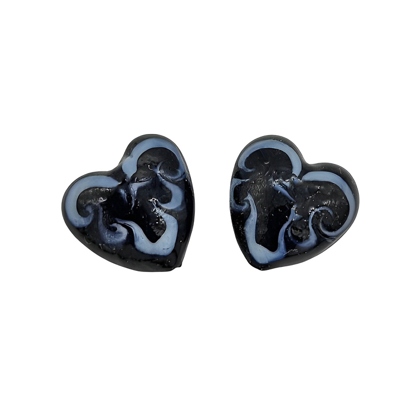 Glasperlen in Herzform gerade, in den Farben schwarz-weiß, 20mm, 1 Stück