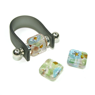 Glasquadrat 12mm blau-silber-blau