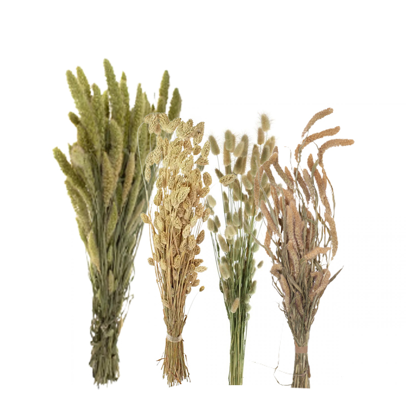 Der Gräsermix besteht aus Setaria groß + mittel (Süßgras/Borstengras), Lagurus (Häschenschwanzgras) und Phalaris (Glanzgras). Ideal für Trockengestecke, Kränze oder zum Binden auf Metallringen.
