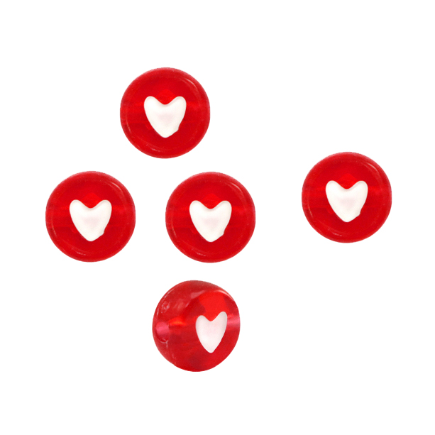 Herzperlen in 7mm, rot transparent mit weißem Herz, passend zu unseren Buchstabenperlen, Preis pro Stück