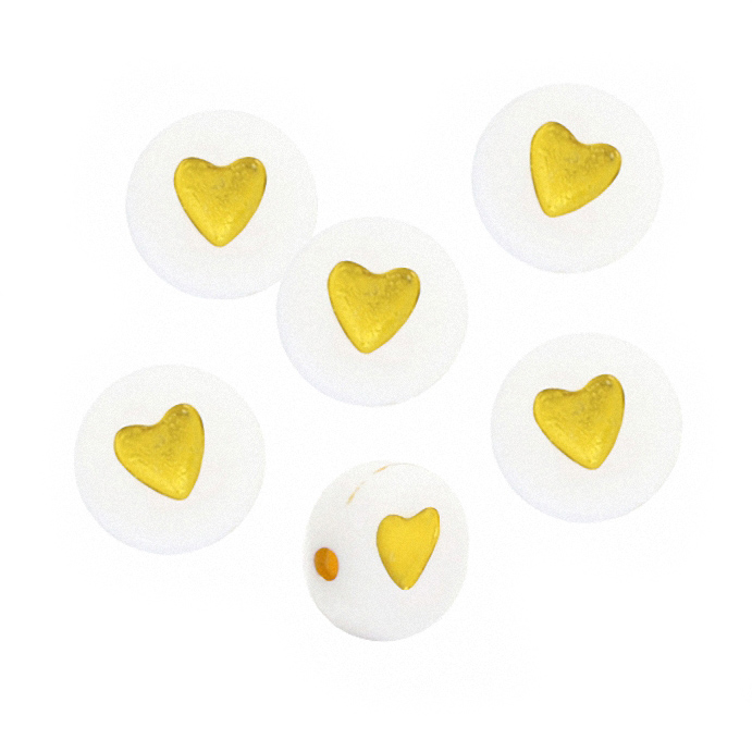 Herzperlen in 7mm, weiß mit goldenem Herz, passend zu unseren Buchstabenperlen, Preis pro Stück