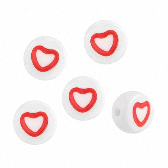 Herzperlen offen in 7mm, weiß mit rotem Herz, passend zu unseren Buchstabenperlen, Preis pro Stück