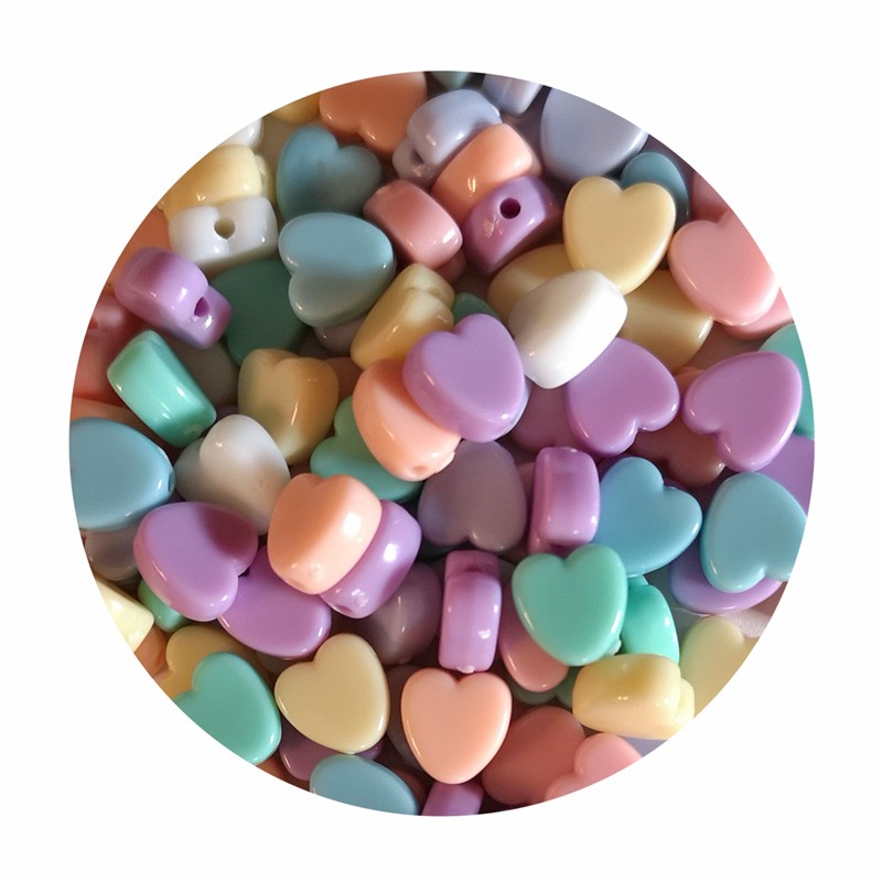 Herzperlen in 9mm, pastellfarben bunt, passend zu unseren Buchstabenperlen, Preis pro Stück