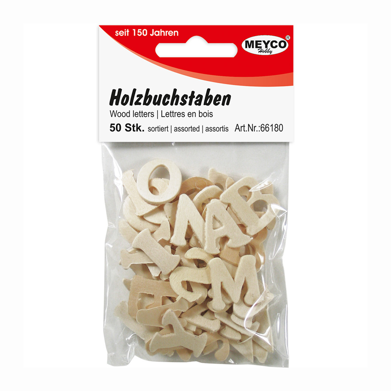 Buchstaben aus Holz natur, A-Z, ca. 2,2cm hoch, 50 Stück unverbindlich sortiert
