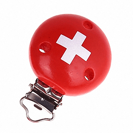 Baby-Clip aus Holz, Schweizerkreuz weiß auf rot, DIN Norm EN-71, 1 Stück