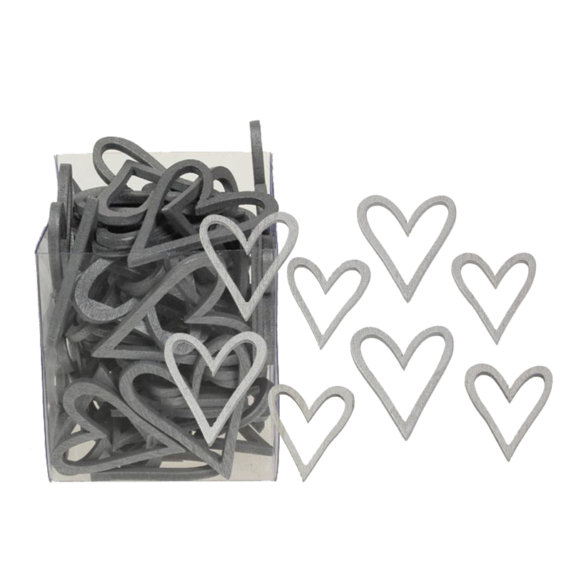 Die Herzchen aus Holz sind silber lackiert (altsilber) und sind im 2er Set in den Größen 35mm + 45mm erhältlich. Gerade für Hochzeiten stehen Herzen hoch im Kurs. Die längliche Form ist sehr modern und sieht auf Tisch & Tafel besonders dekorativ aus.