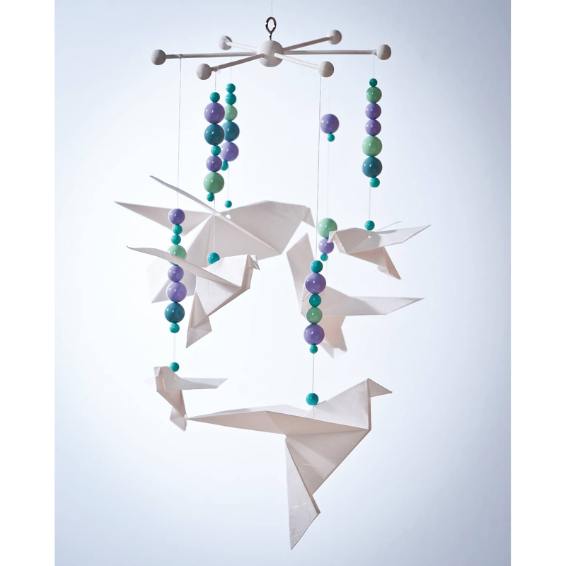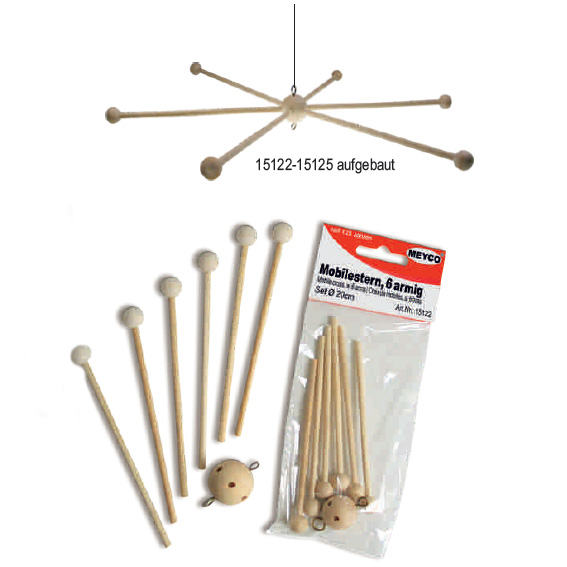 Bei dem Set handelt es sich um Holzstäbe mit Kugeln, die zu einem Stern zusammengesteckt werden können. Daran lassen sich dann Tiere, Figuren, Blumen oder andere Gegenstände anbringen. Ein Mobile dient zur Unterhaltung des Babys beim Einschlafen, wickeln oder einfach als Beschäftigung.