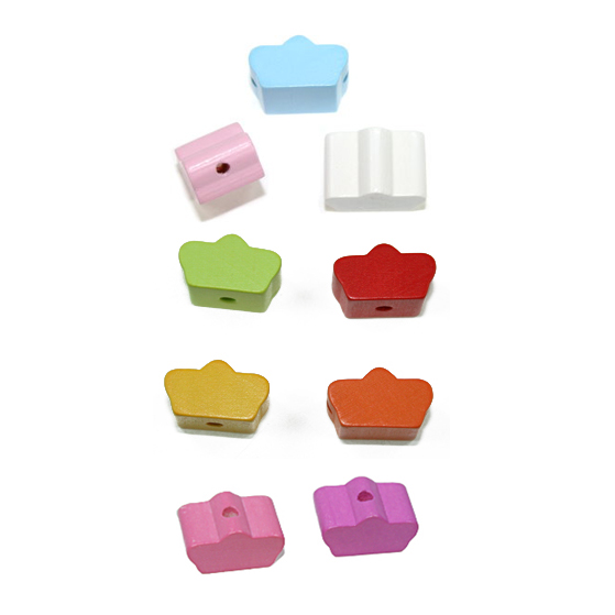 Holz-Motivperle / Formperle Krone in vielen bunten Farben, ca. 18 x 10mm, Fädelloch Ø 3mm
