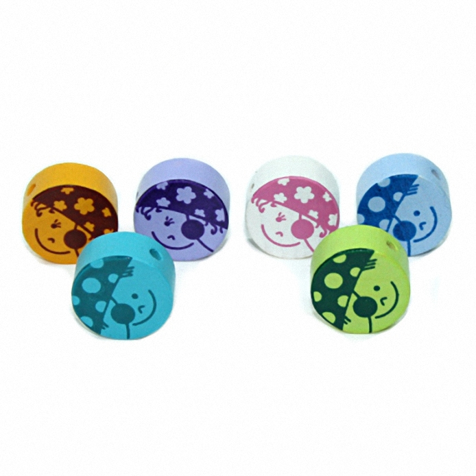 Holz-Motivperle Pirat & Piratin, ca. 20mm, Bohrung quer, Fädelloch Ø 3mm