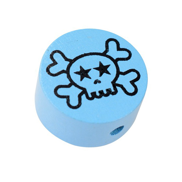 Holz-Motivperle Scull (Totenkopf) blau, ca. 20mm, Bohrung quer, Fädelloch Ø 3mm