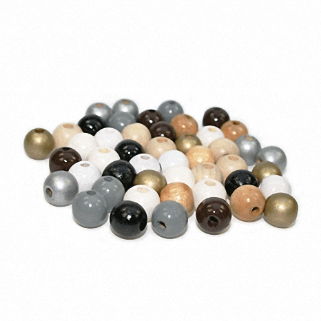 Holzperlen Glamour-Mix, Ø 10 mm, Bohrung ca. 2-2,5 mm, 50 Stück