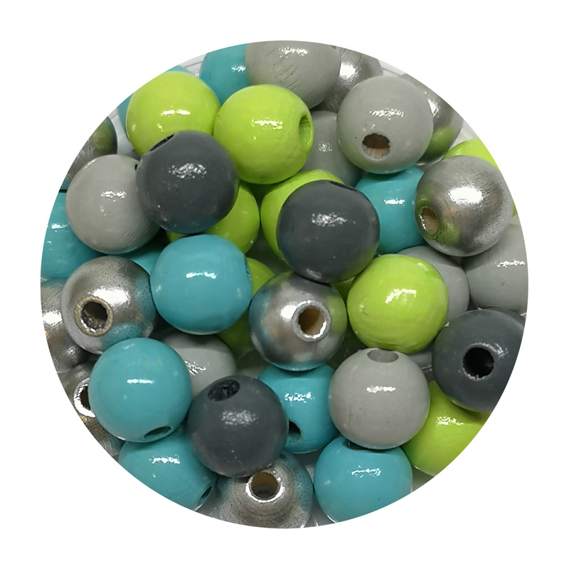Holzperlen Lime-Mix, Ø 10 mm, Bohrung ca. 2-2,5 mm, 50 Stück