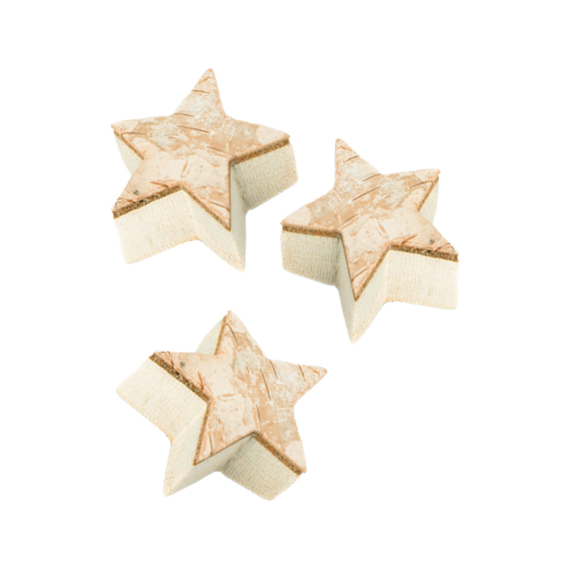 Hübsche Rindensterne aus Birkenholz in der Größe von ca. 4cm. Die Sterne sind ca. 1cm stark und werden als 10er Pack verkauft. Ideal für Adventskränze oder Gestecke oder einfach als Tischdeko zum Streuen.