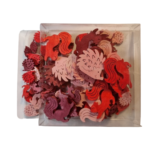 Mit den Holz-Streuteilen „Igel, Eichkätzchen & Blatt“ gestalten Sie im Handumdrehen kreative und stilvolle Dekorationen. Die liebevoll bemalten Figuren in Rosa, Rot und Bordeaux verleihen Ihren Bastelprojekten eine moderne und zugleich natürliche Note.