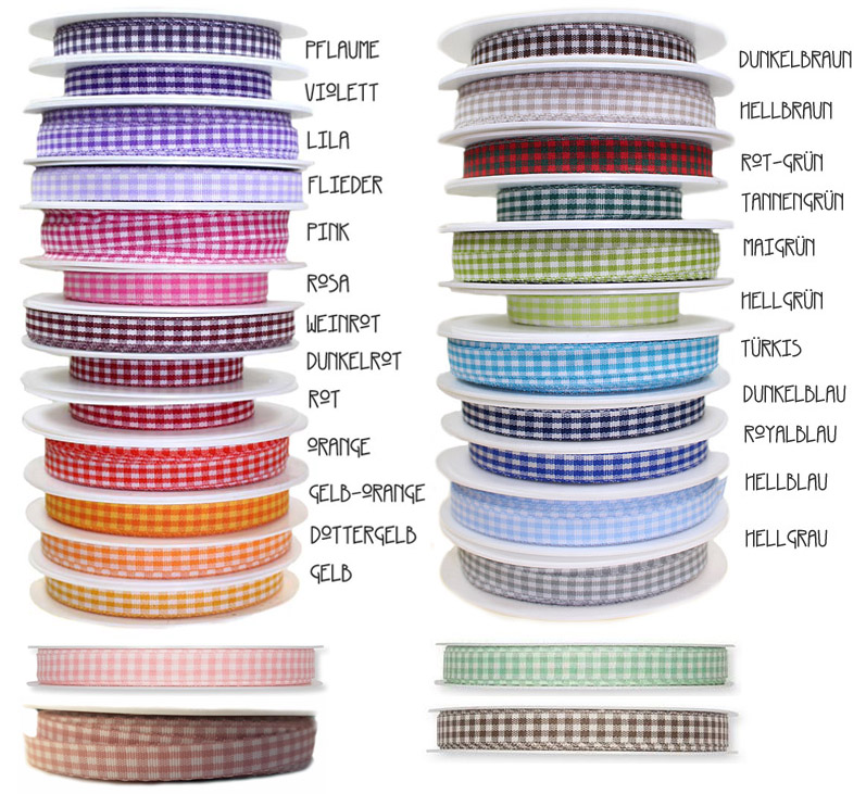 Vichy Karo oder Karobänder sind beliebte Bänder im Landhausstil. Hierbei handelt es sich um ein kleinkariertes Band das ideal für Marmeladengläser, Kleidung, Acessoires und Schmuck verwendet werden kann. Sie können damit aber auch Geschenke verpacken oder das Band als Aufhänger verwenden. In Gestecken und Kränzen ist ein Karoband immer gern genommen.