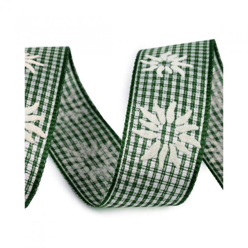 Dekoband kariert mit Edelweiß, 25mm breit, 100% Polyester, Preis pro Meter