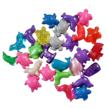 Acrylperle in Form von Meerestieren (Fisch, Schildkröte, Seehund, Wal, und 1 Schiff...). Die Perle ist ca. 23mm groß und hat eine Bohrung von ca. 4-5mm (horizontal). Ideal als Geschenkanhänger, Handyanhänger etc.