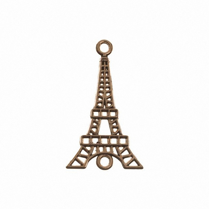 Dieser Anhänger in Form des Eiffelturms hat 2 Ösen. Man kann ihn daher als Anhänger oder aber auch als Verbinder verwenden. Als Verbinder eignet er sich für Armbänder oder Ohrringe.